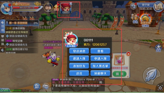 玩家也可以在游戏中点击其他玩家来加好友,发送消息等操作。